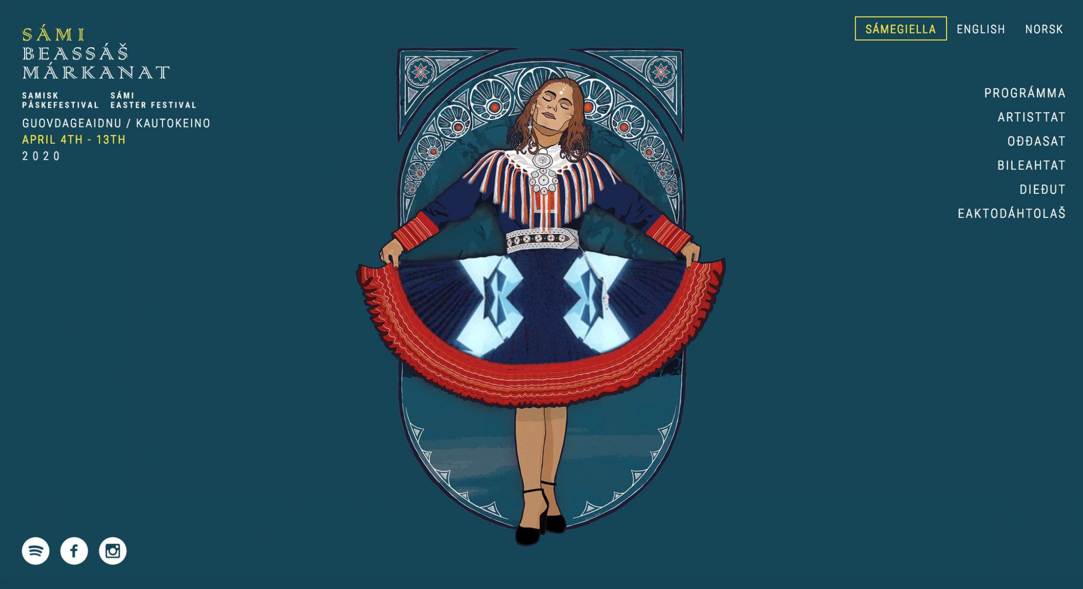 I designed and built the website using WordPress. The site has sections for Artists, Events, and a blog/news section all update-able through the admin section of the website. The site is accessible in three languages, Norwegian, English and Sami. Sami is not an official language of WordPress so I created a new language file for Sami.